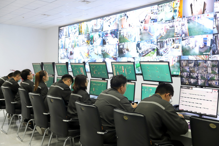 圣泉工作人员在控制室操作酚醛树脂自动化生产
