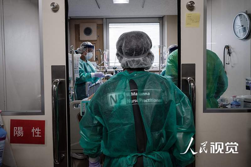 当地时间2021年8月8日,日本神奈川县横滨,当地大学医院重症监护室内医生为新冠肺炎患者治疗。 人民视觉 图