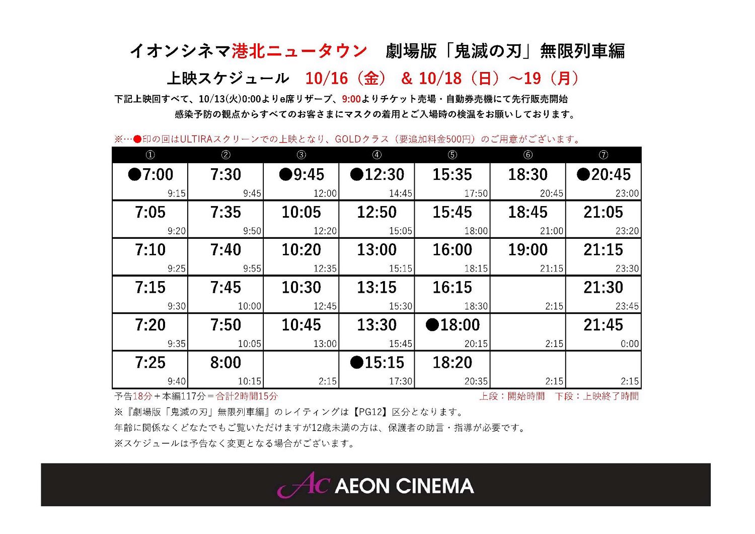 另一方面,厄年反倒成了帮助《无限列车篇》扫除同档期竞争对手的有利因素。由于疫情在全球肆虐,好莱坞电影纷纷延期上映,新片难以为继。假如没有疫情的话,原本这个档期有望在日本上映的电影包括《王牌特工:源起》以及《尼罗河上的惨案》,它们多多少少要分走一些票房,更重要的是会占据部分排片的比例。而如今,《无限列车篇》上映前一周的周末票房冠军还是上映已有些时日的《信条》。可以说,面对“鬼灭”,同档期里一个能打的也没有。于是,不少影院索性将所有的厅都排给了《无限列车篇》,有些一天的排片量高达40场,比如新宿东宝电影院就在影片上映前开放所有座位,并且从早到晚排了42场。事实上,单是新宿一地,一天的排片就达到史无前例的100场之多。由于场次太过密集,观众打趣看《无限列车篇》的排片表,好像是在看火车的时刻表。