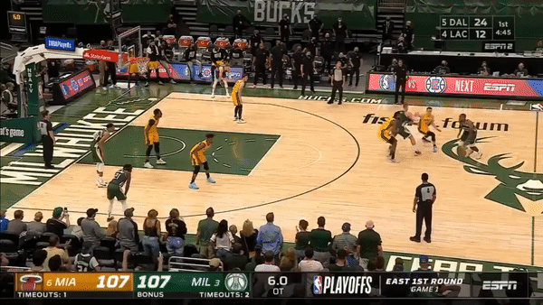 本场比赛两队打得难分难解,在常规时间里多次打平或是比分交替领先。热火依靠着巴特勒在终场前命中压哨上篮,成功将比赛拖入加时。但凭借着米德尔顿0.5秒的准绝杀命中,雄鹿成功赢下开门红。