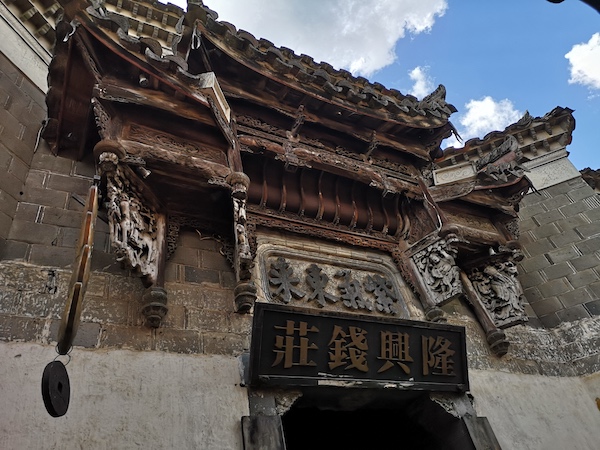 钱庄门墙异常繁复,“隆兴钱庄”四字匾额上还有“紫气东来”四个大字。钱庄内部摆设着旧时钱箱和自鸣钟等器物,有趣的是,帐房上的牌匾前三个字是“和气为”,直觉以为是“和气为财”,毕竟是钱庄嘛。