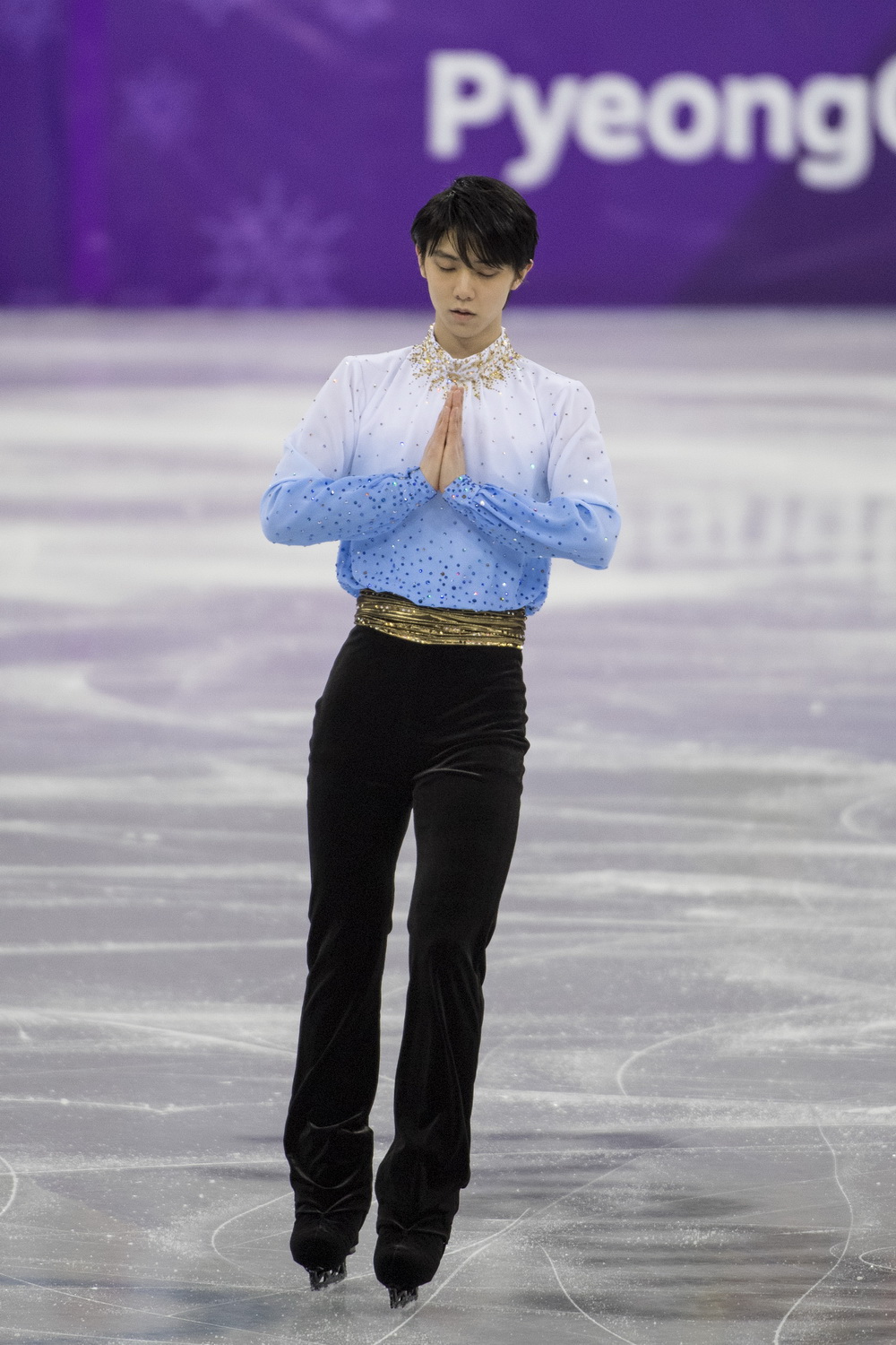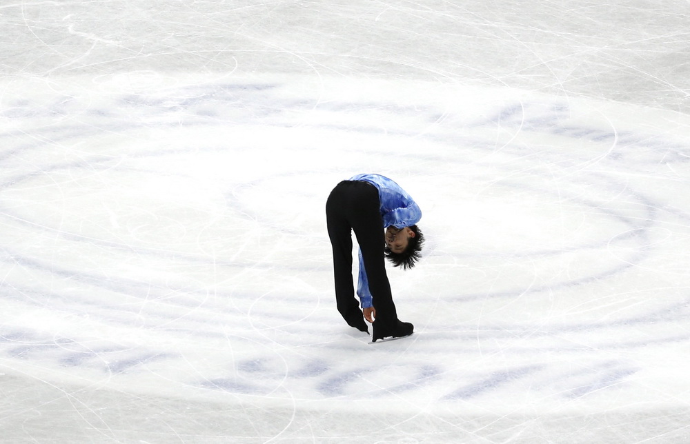 2018年2月16日,韩国,羽生结弦在平昌冬奥会男子花样滑冰比赛中。