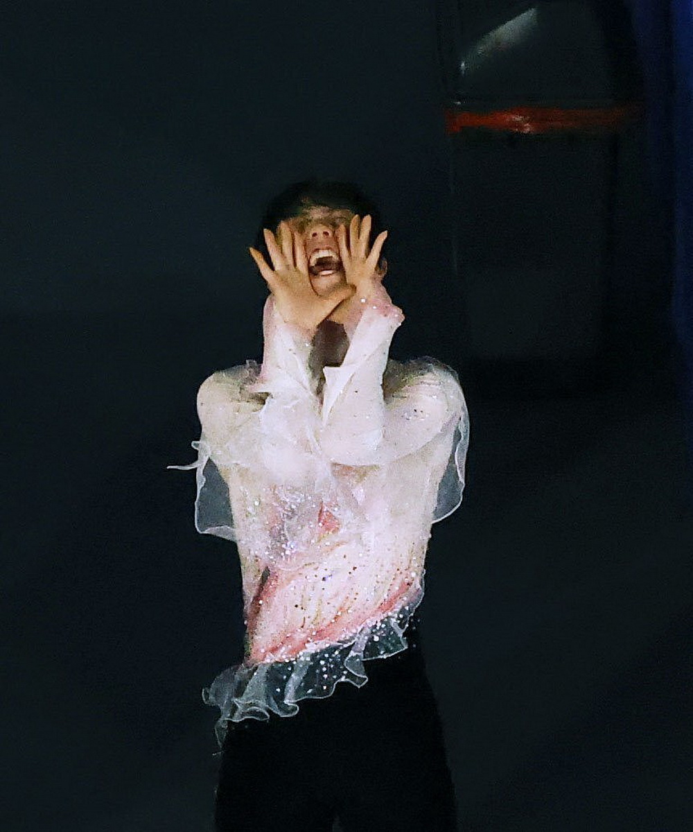 2022年2月20日,2022北京冬奥会花样滑冰表演赛,羽生结弦亲吻冰面。