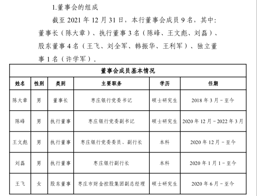 枣庄银行今年4月发布的2021年报显示,陈峰已卸任枣庄银行行长职务,任执行董事、党委副书记(任期2020年12月-2022年3月)。由枣庄银行党委书记、董事长陈大章代为履职行长职责。