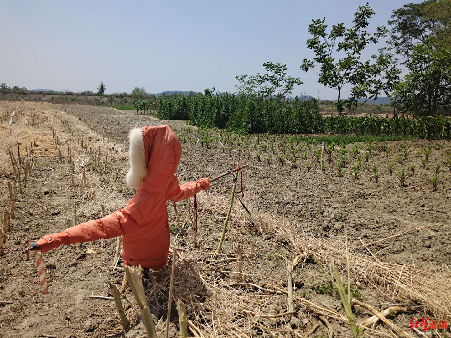 黄德清从4月初开始下种玉米,被鸟糟蹋后,又补种两次。她说直到5月初,鸟儿才不再啄食玉米了,大概是因为村里的枇杷成熟了,鸟儿都吃枇杷去了。但又遇上今年天气干旱,“今年的苞谷可能种不出来了”。